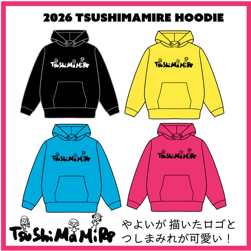 パーカーはブラックに加えて、元気カラーのイエロー、ブルー、ピンクも作ってみたよ!