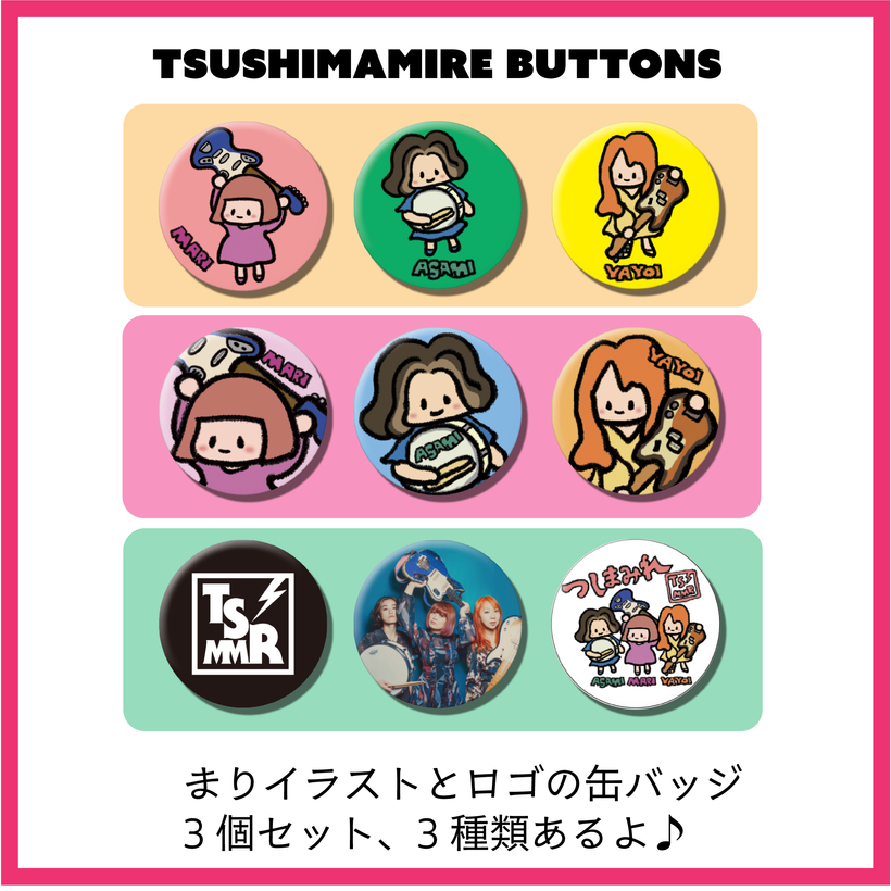 そして、まりイラストが可愛いバッジセットも作りました!3種類あるよ!